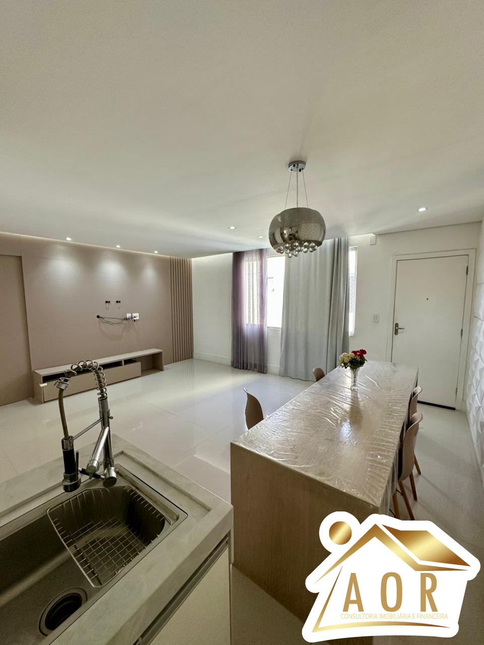 Apartamento de 03 quartos amplos sendo 01 com suíte e armários planejados, sala ampla para 02 ambientes, cozinha em formato de ilha toda planejada e mobiliada com fogão, forno e coifa, área de serviços, 01 banheiro social amplo, 01 vaga de garagem descoberta.