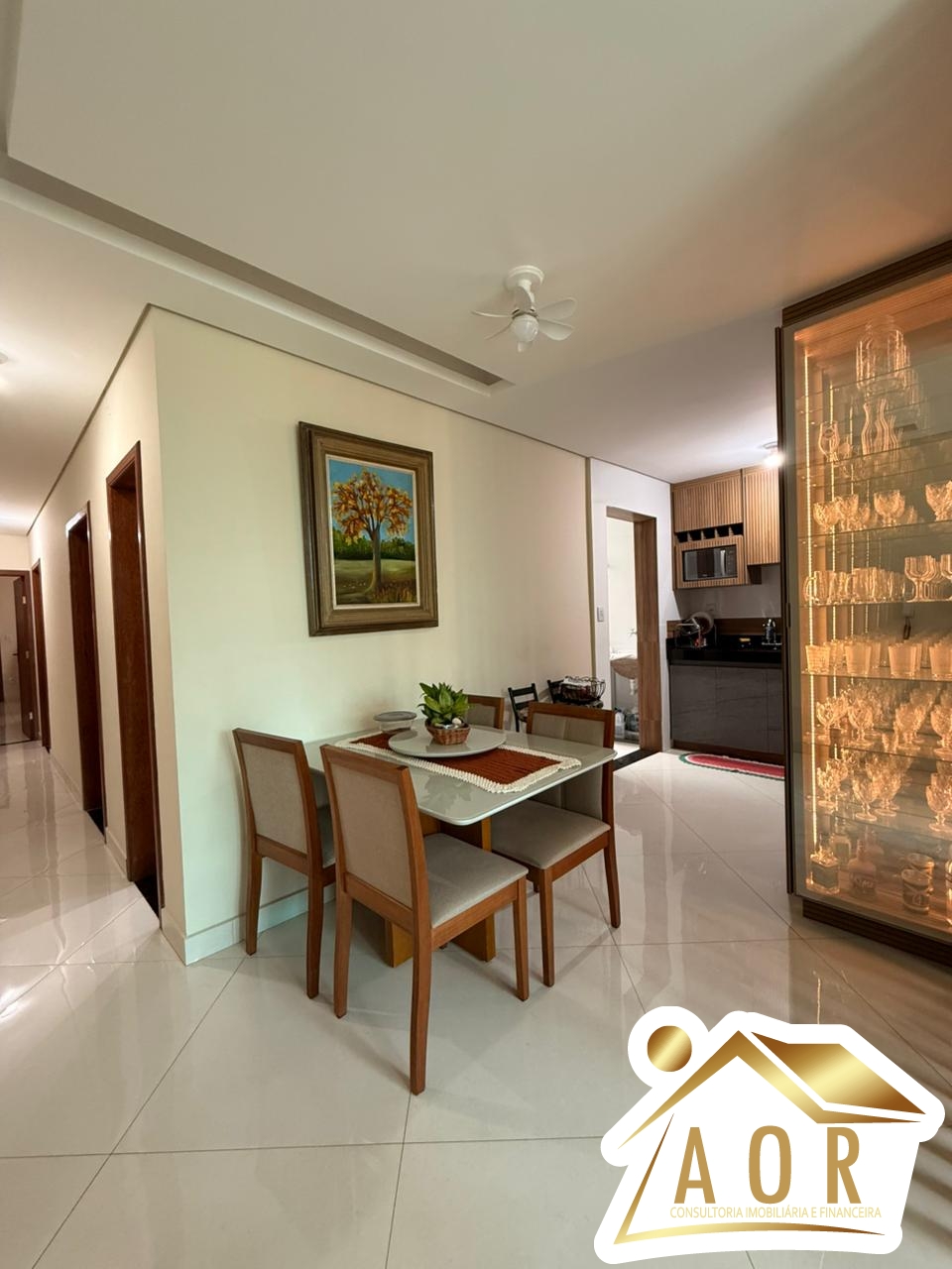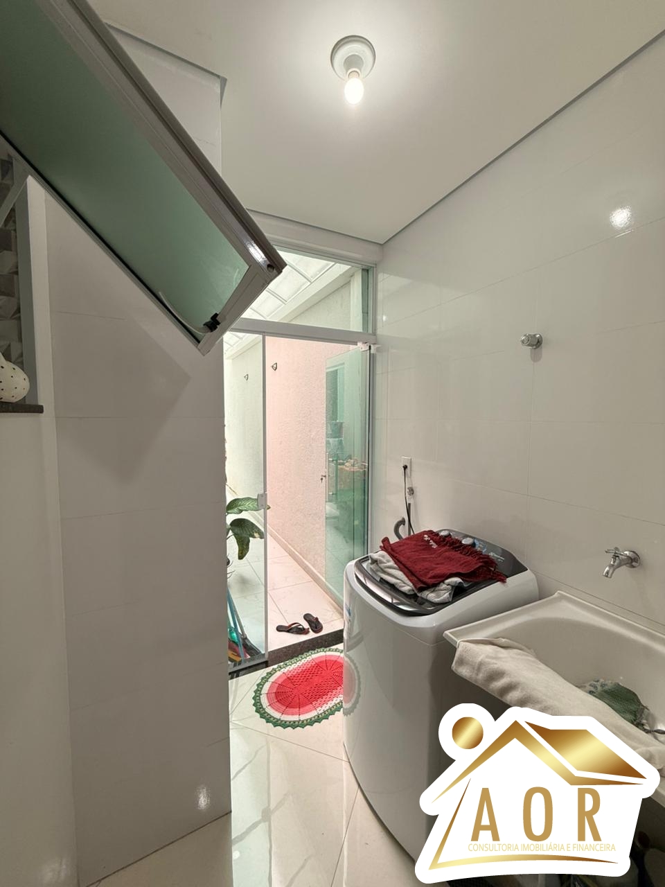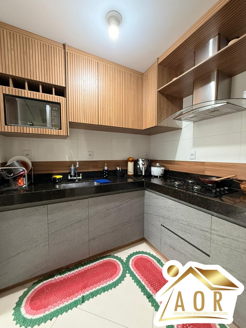 Sala ampla em 02 ambientes, cozinha com bancada de granito e armários planejados, 03 quartos amplos sendo 01 suíte, área de serviços coberta, área privativa, 01 banheiro social, garagem para 02 carros.