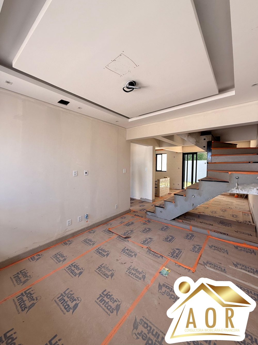 1º Pavimento: Sala ampla para 02 ambientes, sala de jantar conjugada com cozinha, 01 lavabo, área de serviços coberta, área privativa, garagem para 03 carros.