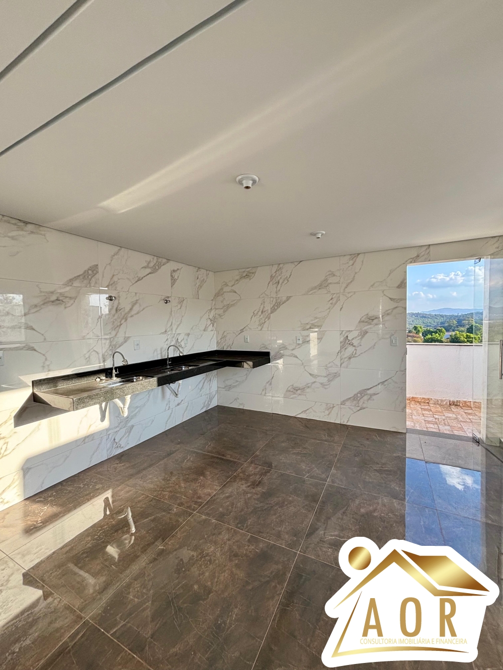 2º Pavimento: 01 lavabo, cozinha com bancada de granito, cobertura ampla coberta e com sacada, área de serviços.