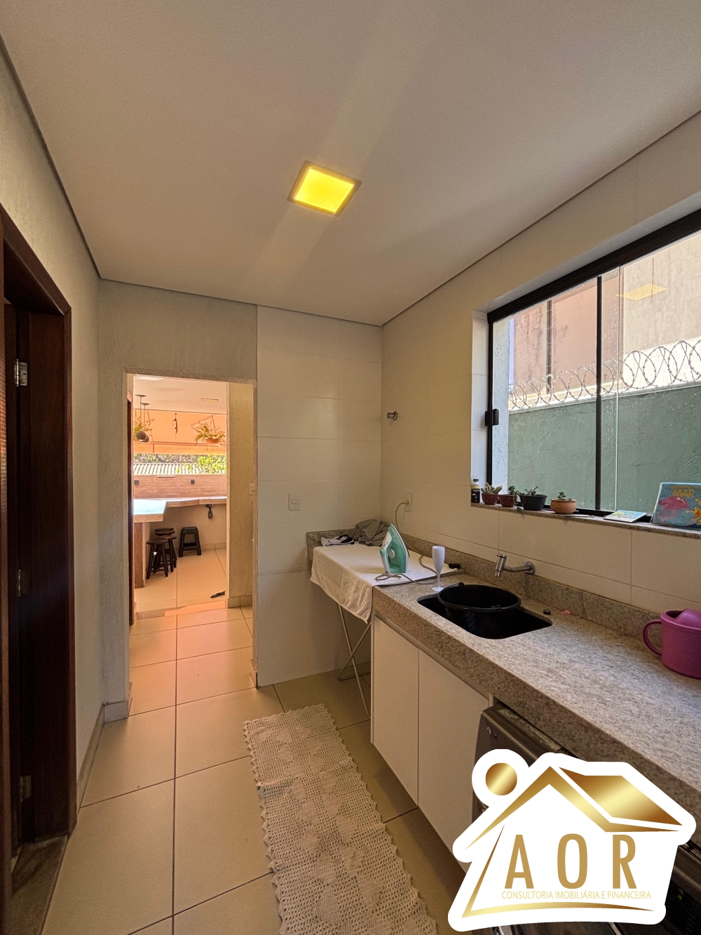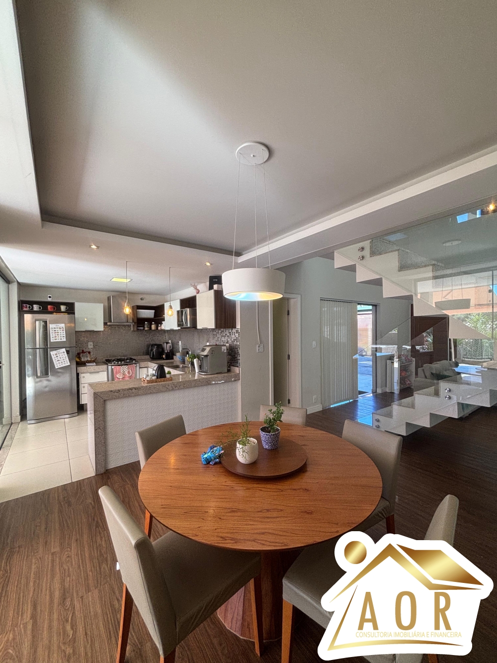 1º Pavimento: Garagem para até 04 carros, corredor lateral que dá acesso a área privativa com área gramada, sala para 02 ambientes integrada com a cozinha, lavabo, área de serviços coberta, 01 banheiro social, ampla área gourmet com churrasqueira, deck com pré-disposição para piscina.